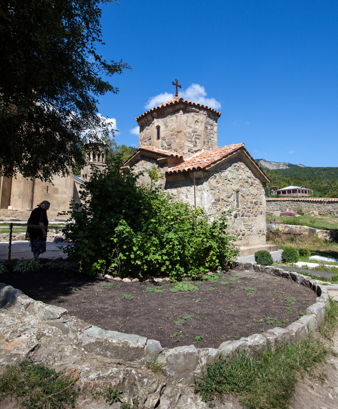 Nach einem Spaziergang durch die Altstadt machen wir noch einen Abstecher zur Samtawro-Kirche die zu einem Frauenkloster gehört. Fast interessanter als die Hauptkirche war eine kleine Kapelle daneben, in der sich neben einem Pfarrer zahlreiche weitere Menschen tummelten, obwohl sie nach meinem Eindruck eigentlich nur für eine Person Platz bot.