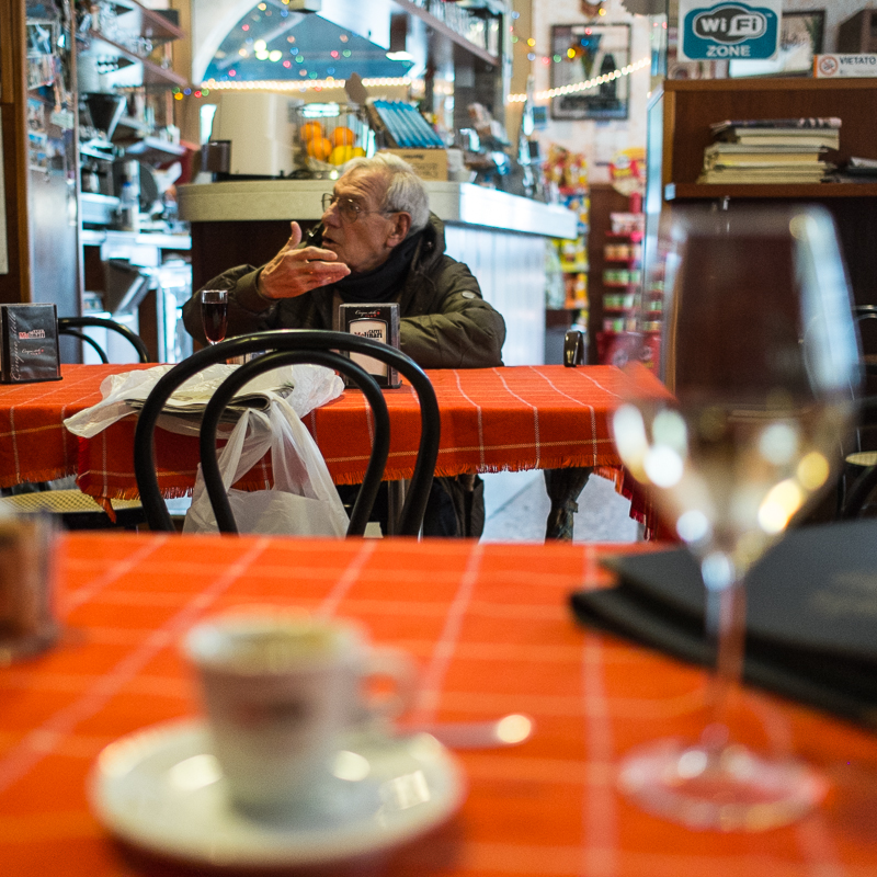 Unseren „Mittagsombra“ (Ein Glas Weißwein und einen Kaffee) nahmen wir zusammen mit einigen sehr eifrig und lautstark diskutierenden Italienern ein. Wir haben kein Wort verstanden, außer dass mehrfach das Wort „Berlusconi“ fiel. Mit vielen neuen Eindrücken und etwas „durchgefeuchtet“ haben wir uns dann auf den Rückweg ins Hotel gemacht. Heute Abend wollen wir vielleicht noch eine Nachtaufnahme versuchen. Davon dann morgen mehr…