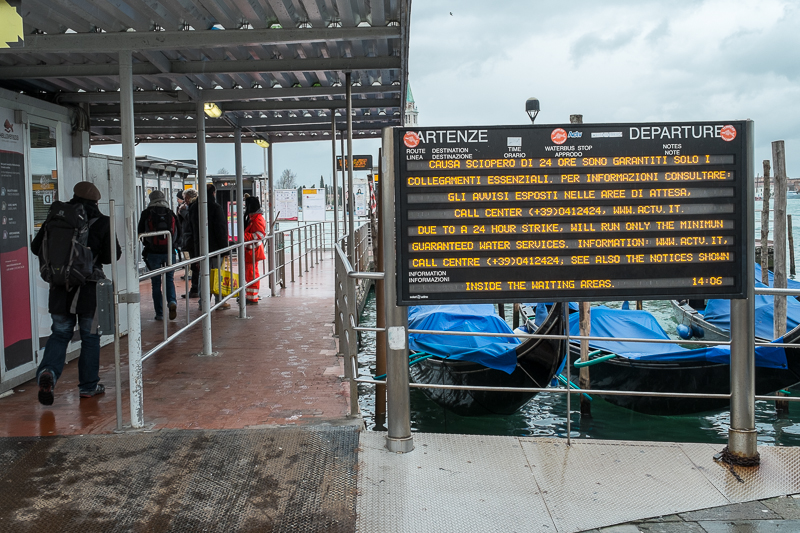Ja, es kommt doch immer anders als man denkt. Der erwartete Nieselregen ist zwar eingetroffen, aber trotzdem wollten wir noch die Insel San Georgio und San Guidecca im Süden Venedigs erkunden. Die Vaporettos haben jedoch einen spontanen 24-Stunden-Streik eingelegt und zeigten uns nur ihren A…