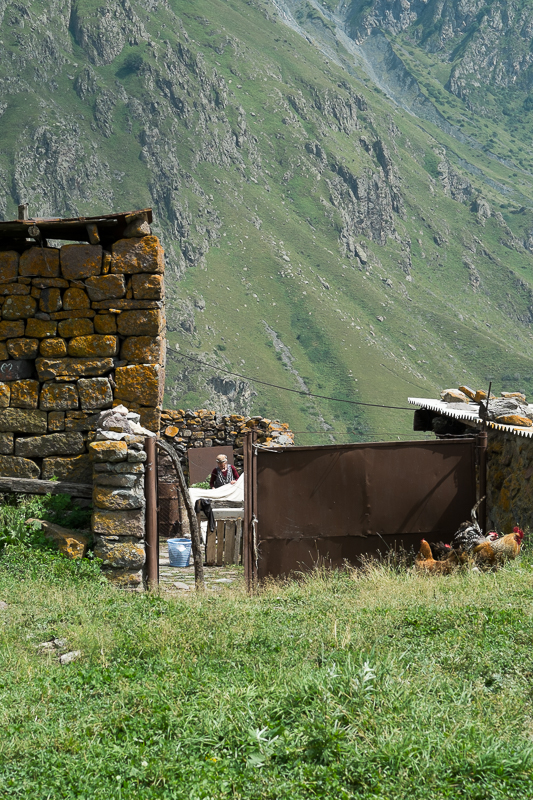 Es wohnt in diesem Dorf eine alte Frau, die ich schon 2012 gern fotografiert hätte, doch mein Versuch wurde damals jäh beendet, als sie mit einen Knüppel auf mich los ging. Auch Georges Überredungskünste halfen nicht. Dieses Jahr im April war ich ja mit Nino hier, die sich unter Einsatz ihres Lebens dafür eingesetzt hatte und über eine viertel Stunde mit ihr verhandelte (aber ich entging wenigstens dem Knüppel).