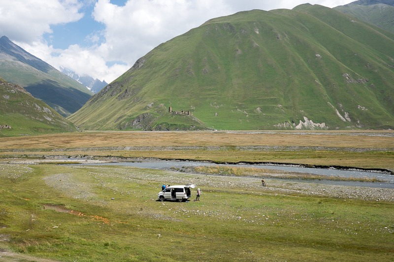 Immer noch etwas ungläubig, dass es das schon war, verstauen wir uns wieder im Auto und zurück geht es zunächst nach Ketrisi, wo wir noch einen ausgiebigen Fotostopp einlegen. Und dann geht es zurück über den Pass bis an die Hauptstraße, wo Dato mit unserem Kleinbus einen entspannten Tag verbracht hat, aber seine Stunde sollte noch kommen.