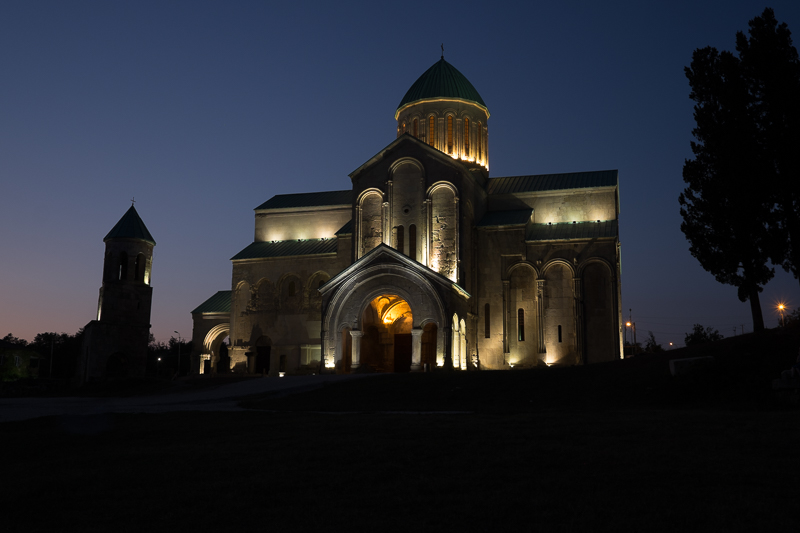 Es ist Sonntag. Nach dem Frühstück schlendern wir gemütlich zur Baghrati Kirche. Schon am Morgen ist es sehr heiß, deutlich über 30 Grad. Wir wechseln im inneren der Kirche mit tollen Gesängen nach draußen und wieder nach drinnen. Bei georgisch orthodoxen Gottesdiensten ist das problemlos möglich.