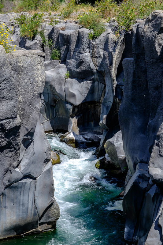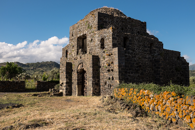 Den zweiten Tag in Sizilien nutzen wir zu einer kleinen Rundfahrt. Zuerst versuche ich die alte Basilika wieder zu finden. An der Straße steht ein Schild, aber dann wird es schwierig. Aber nach einem Fehlversuch stehen wir davor. Für ein vernünftiges Foto steht die Sonne aber falsch und wir beschließen an Abend noch einmal wiederzukommen. Zu Fuß wollen wir dann zum Fluss Alcantara und auch diesen finden wir nach einem kleinen Fehlstart sofort. Es ist ein sehr schöner Ort, wo sich der Fluss von der Oberfläche über zahlreiche Wasserfälle tief ins Gestein eingefressen hat. Und für Aufnahmen vom Fluss steht die Sonne sehr günstig.