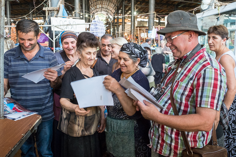Um 18 Uhr nach knapp 9 Stunden Fahrt erreichen wir Telavi. Und es geht erst einmal auf den Markt. Hier sind noch einige Fotos abzuliefern und das wollen wir noch erledigen.
