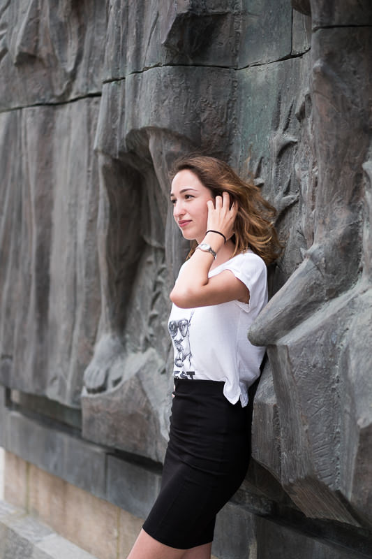 Bevor es zu Lasha’s Eltern geht, machen wir noch einen Fotostopp an einem monumentalen georgischen Denkmal, das Daniel gern besuchen wollte. Lasha hatte dafür extra ein Model für uns organisiert. Und so kam ich zu meinem ersten Modelshooting mit einem georgischen Model, mit Mariam. Leider begann es dann heftig zu regnen und so mussten wir das Shooting abrechen.