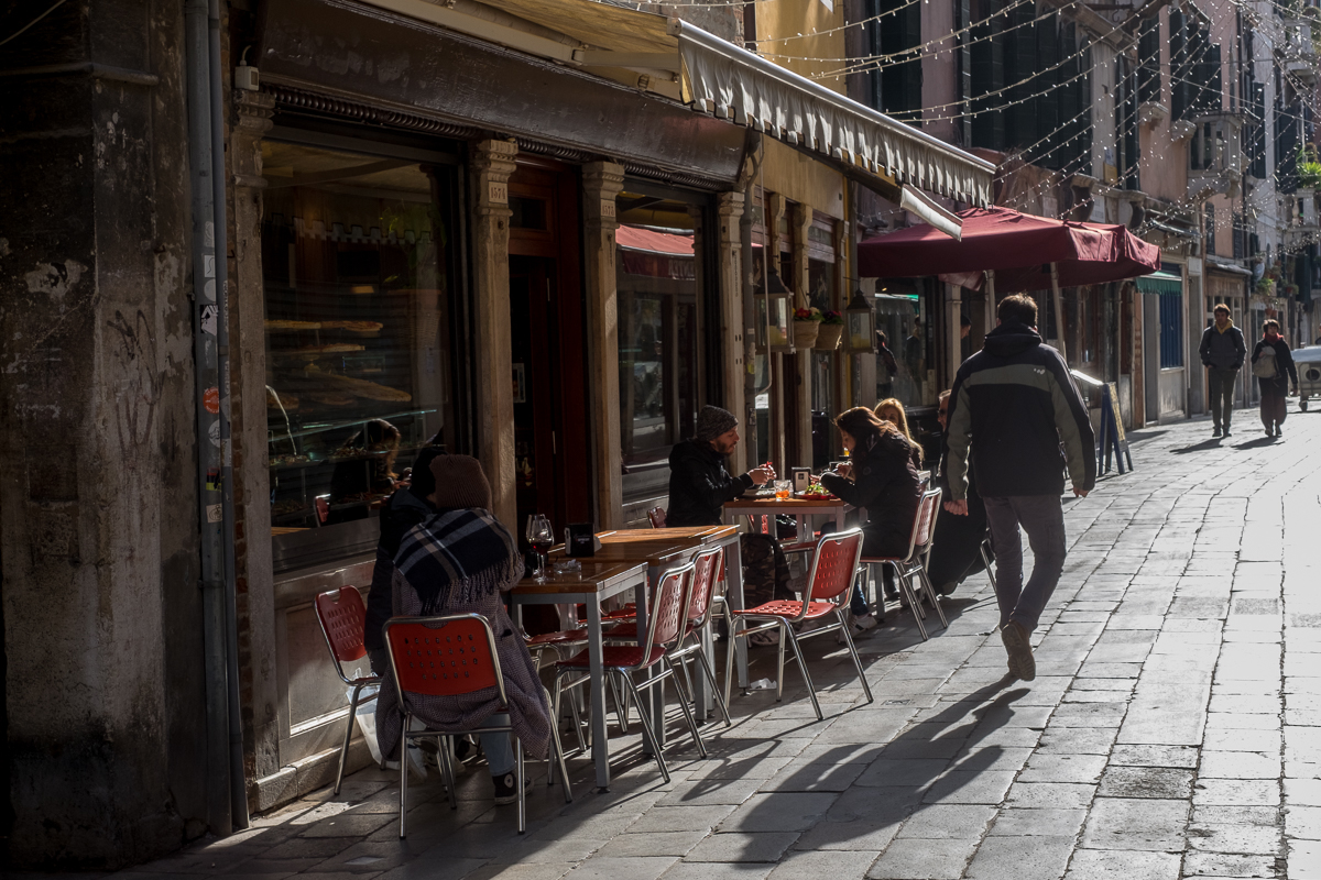 Obwohl das Leben in Venedig sehr viel ruhiger abläuft, vergeht die Zeit für uns wie im Fluge. Es gibt immer wieder neue Dinge zu endecken. So werfen wir am Montag einen Blick auf die Gondelwerft in Trovaso. Hinein lässt man uns verständlicherweise nicht, da in der engen Werkstadt schon die Handwerker kaum Platz finden.