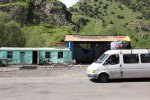 250 km liegen heute vor uns, die längste Etappe unserer Reise. Daher starten wir bereits um halb acht. Da ich das Kloster Tatev aber gern auch noch einem im Morgenlicht sehen möchte bin ich schon zum Sonnenaufgang unterwegs. Leider versperrt eine Wolkendecke im Osten der Sonne den Weg. Aber ganz langsam schiebt sie sich weiter und kurz bevor wir los wollen fällt das Licht auf das Kloster. Nun geht es wieder zurück zunächst Richtung Westen und dann nach Norden. Aber zunächst holen wir das ausgefallene Frühstück mit Käsebrot, Rosinenbrot fast ohne Rosinen, Kaffee und Tee, sowie einem Eis nach. Gegenüber können wir das Treiben in einer Kfz Werkstatt beobachten. Bei der Weiterfahrt begegnen uns mehrere Schafherden auf der Straße, die natürlich sehr zur Belustigung unseres Fahrers alle fotografiert werden müssen. Aber auch die schöne Natur im Großen wie im Kleinen müssen wir einfangen und so zieht sich unsere Fahrt dann doch etwas hin. Gegen Mittag erreichen wir ein sehr schön wieder hergerichtetes Kloster am Ende einer Schlucht. Zum Mittagessen gibt es frische Lammkeule aus dem Erdofen und so gestärkt marschieren wir durch die Schlucht zurück zur Hauptstraße. Dort befindet sich die Aleni-Höhle und wir haben das Glück die Ausgrabungen „live“ beobachten zu können. Bis zu 6000 Jahre alt sind die hier gefunden Dinge, die wir von einem der Mitarbeiter fachkundig erläutert bekommen.