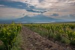 - Der erste Blick auf den kleinen (links) und den großen (rechts in Wolken) Ararat