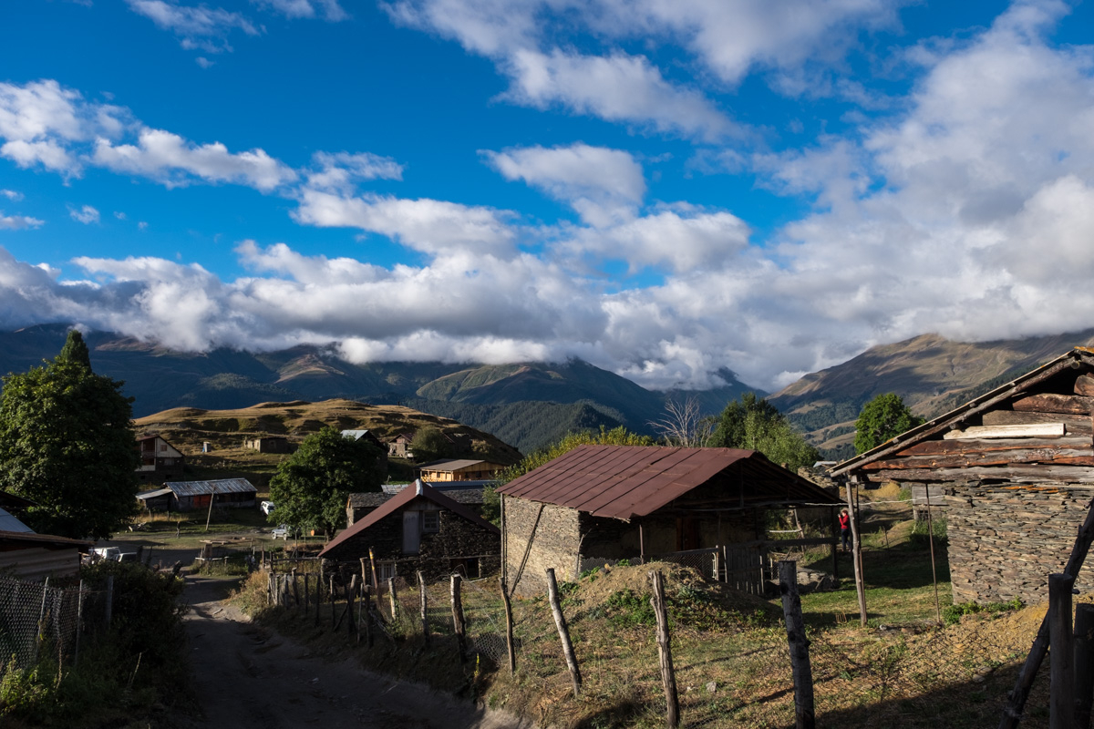 Nach einem – wie immer in Georgien – sehr leckeren Abendessen und einer entspannten Nacht erwachen wir bei blauem Himmel mit weißen Wölkchen.