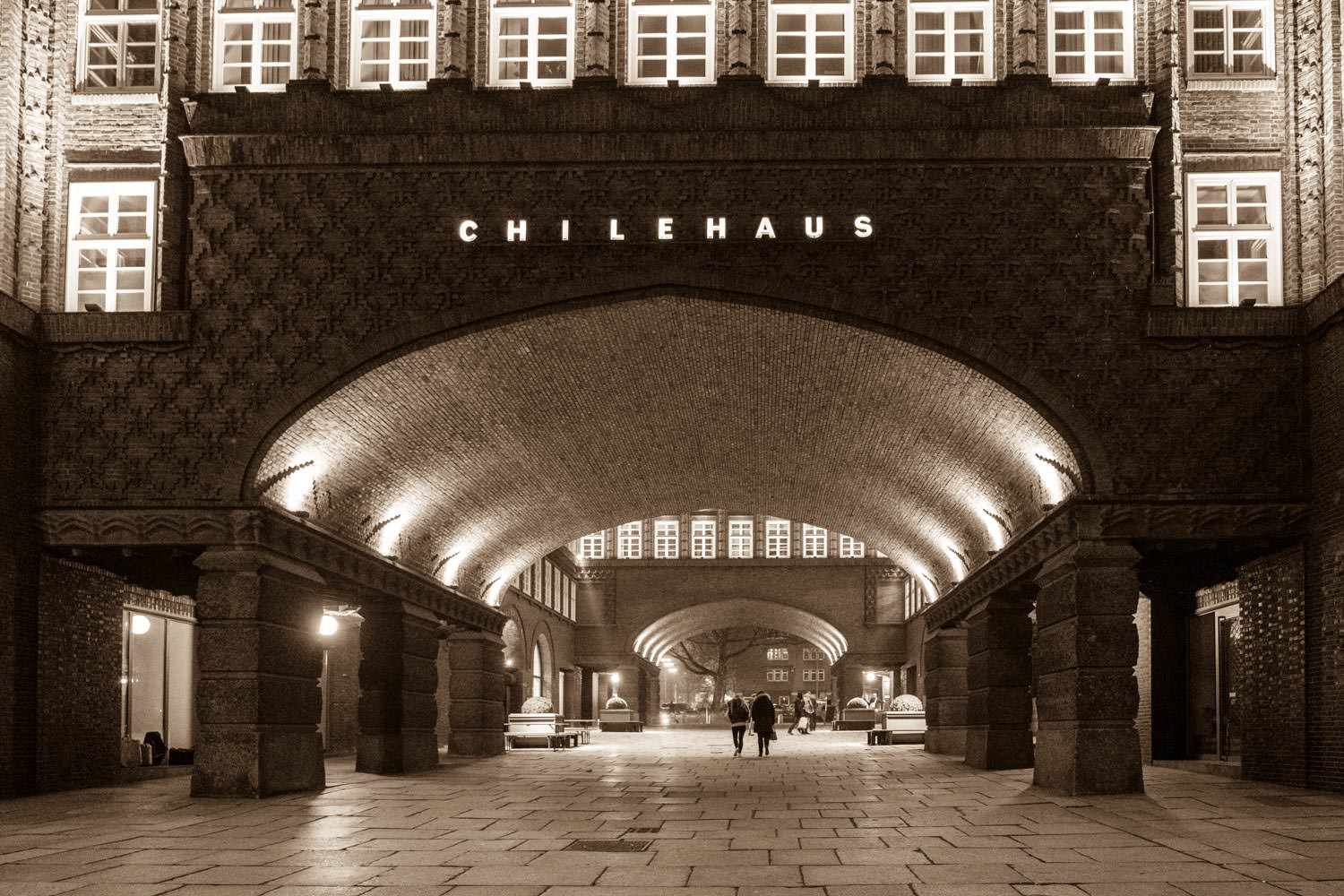 Am Samstag bleibt die Sonne verborgen, was aber gut passte, da wir uns im Treppenhaus des Meßberghofes ausgiebig auf 10 Etagen mit Bildaufbau, auf und absteigenden Linien, sich bewegenden Personen und Türen, in Szene gesetzt durch Licht und Schatten befassten. Kurz vor Einbruch der Dunkelheit war dann noch Zeit für ein paar Bilder vom Chilehaus und -natürlich- das Wasserschloss, das an diesem diesigen Abend eine besondere Atmosphäre ausstrahlte.