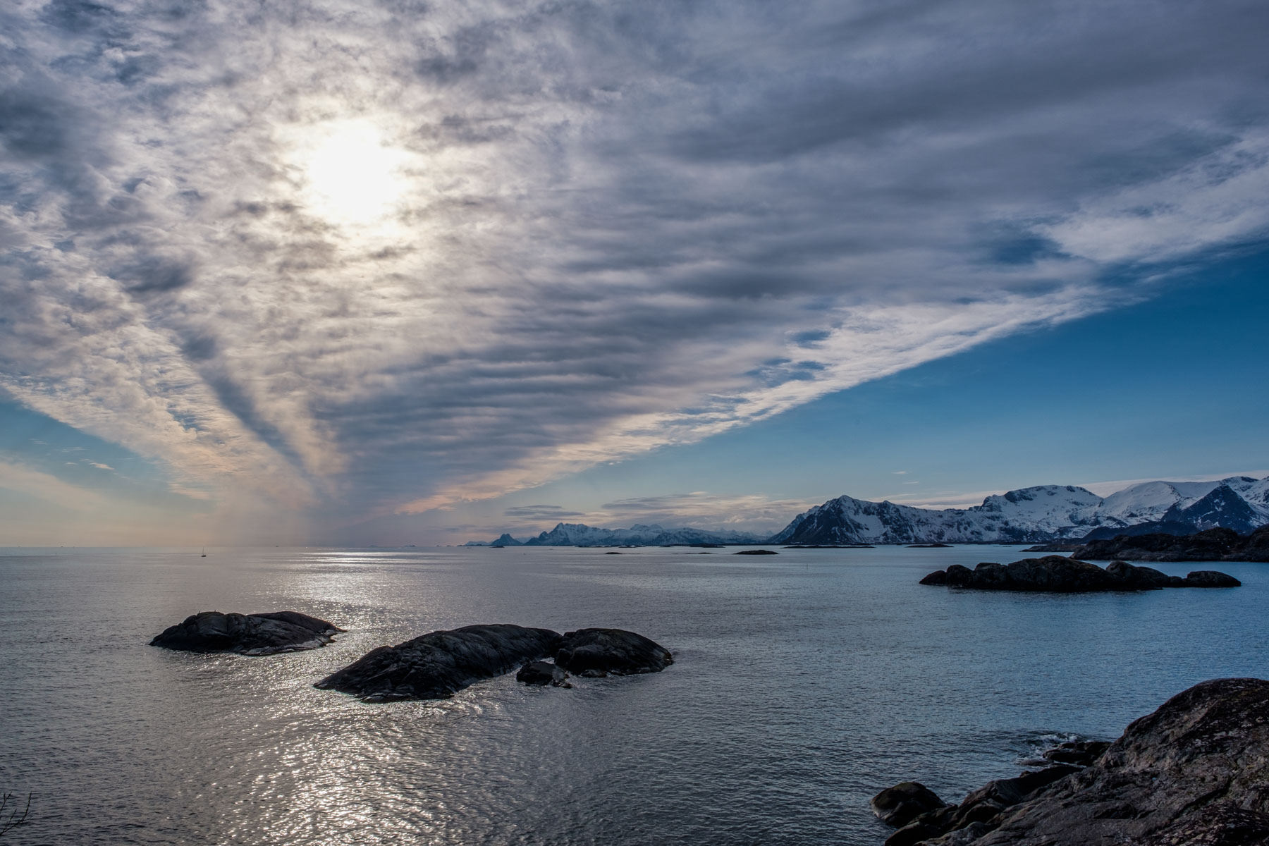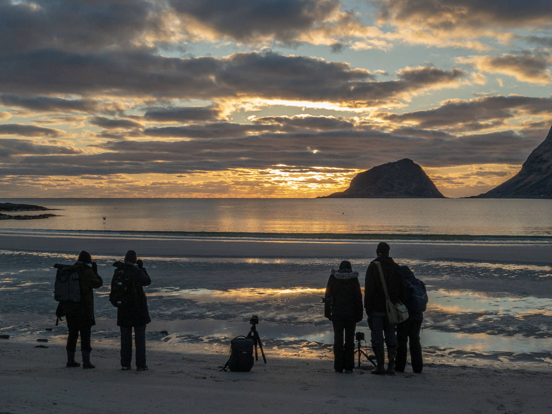 Was heißt „arktisches Licht“? Es bedeutet endlose Sonnenauf- und untergänge, fantastische blaue und goldene Stunde(n), dramatische Wolken, sich schnell änderndes Wetter und es wird nachts nur noch für wenige Stunden dunkel. Daher ist die Chance auf Polarlicht um diese Zeit sehr gering, trotzdem haben es einige von uns in Leknes beobachten können.