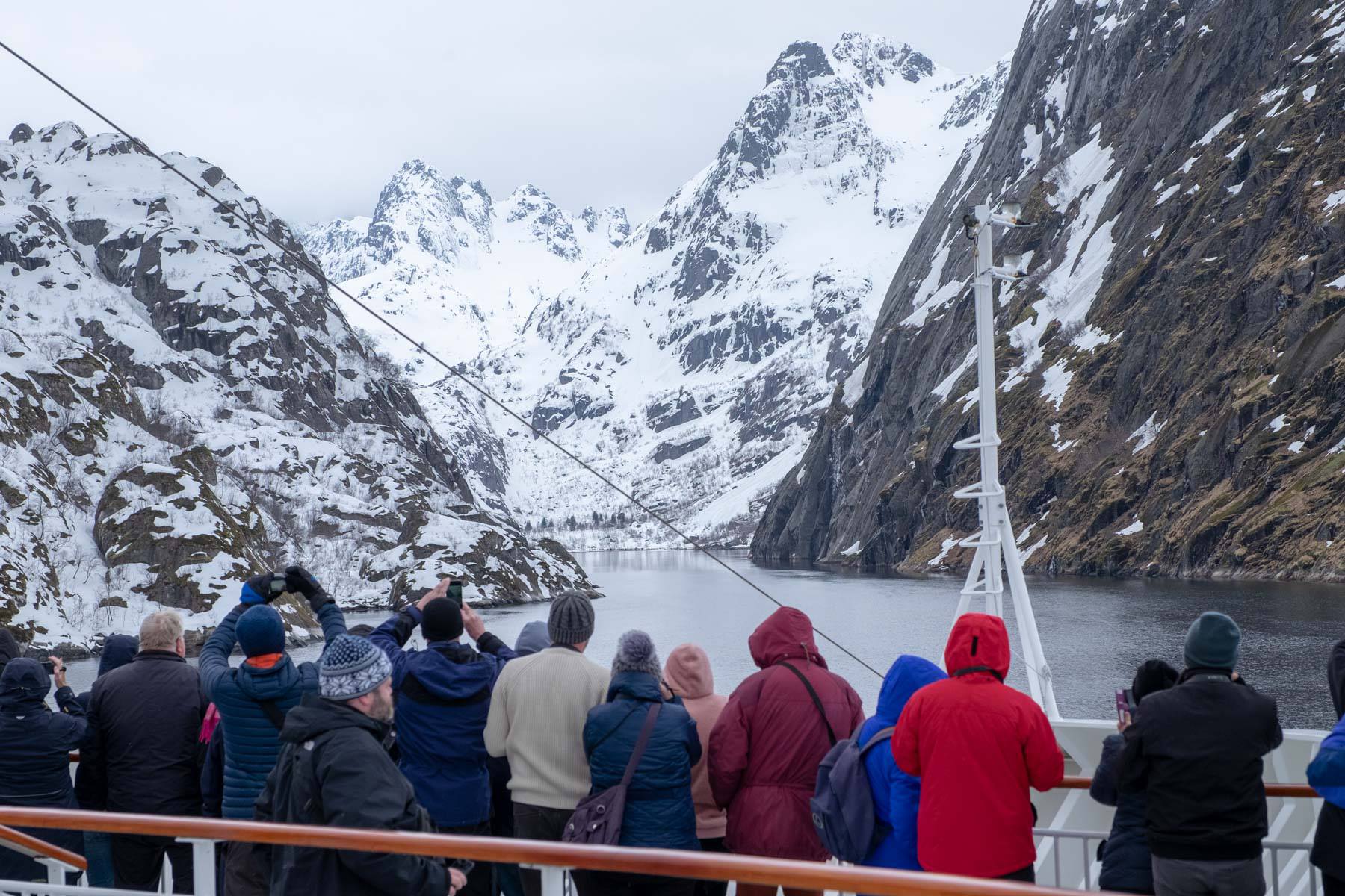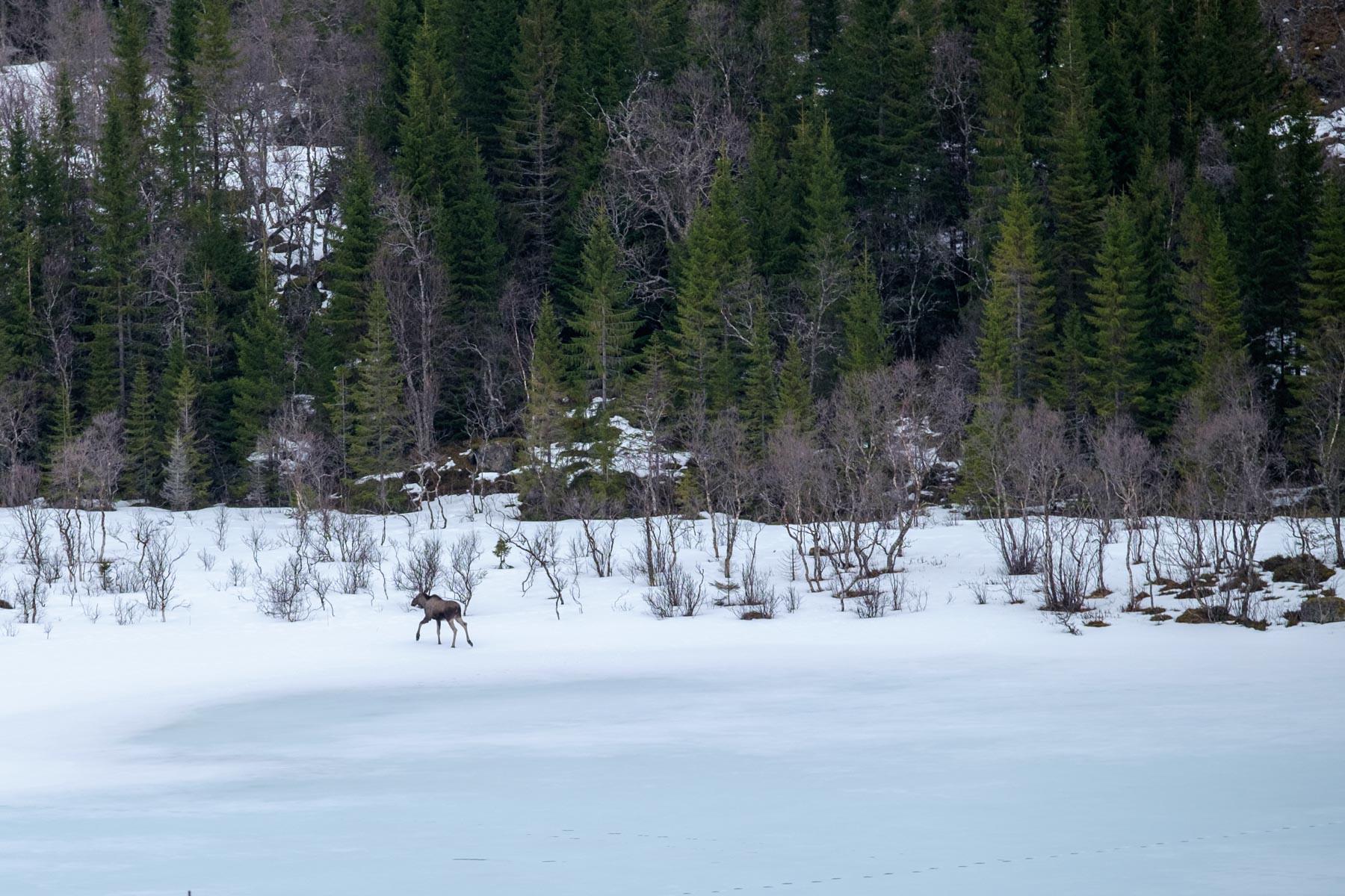 Die zweite Basis war dann das sehr schöne Thon Hotel direkt am Hurtigrutenanleger in Svolvær. Von hieraus erkundeten wir den nordöstlichen Teil der Lofoten. Zahlreiche Fotos von den verschiednen Schiffen der Hurtigruten (es kamen ja jeden Tag zwei) und natürlich auch eine Fahrt mit einem dieser Schiffe durch den Raftsund standen auf dem Programm bevor es dann am 14.4. wieder zurück nach Hardstad ging. Auf der Rückfahrt konnten wir dann sogar noch einen Elch erspähen.