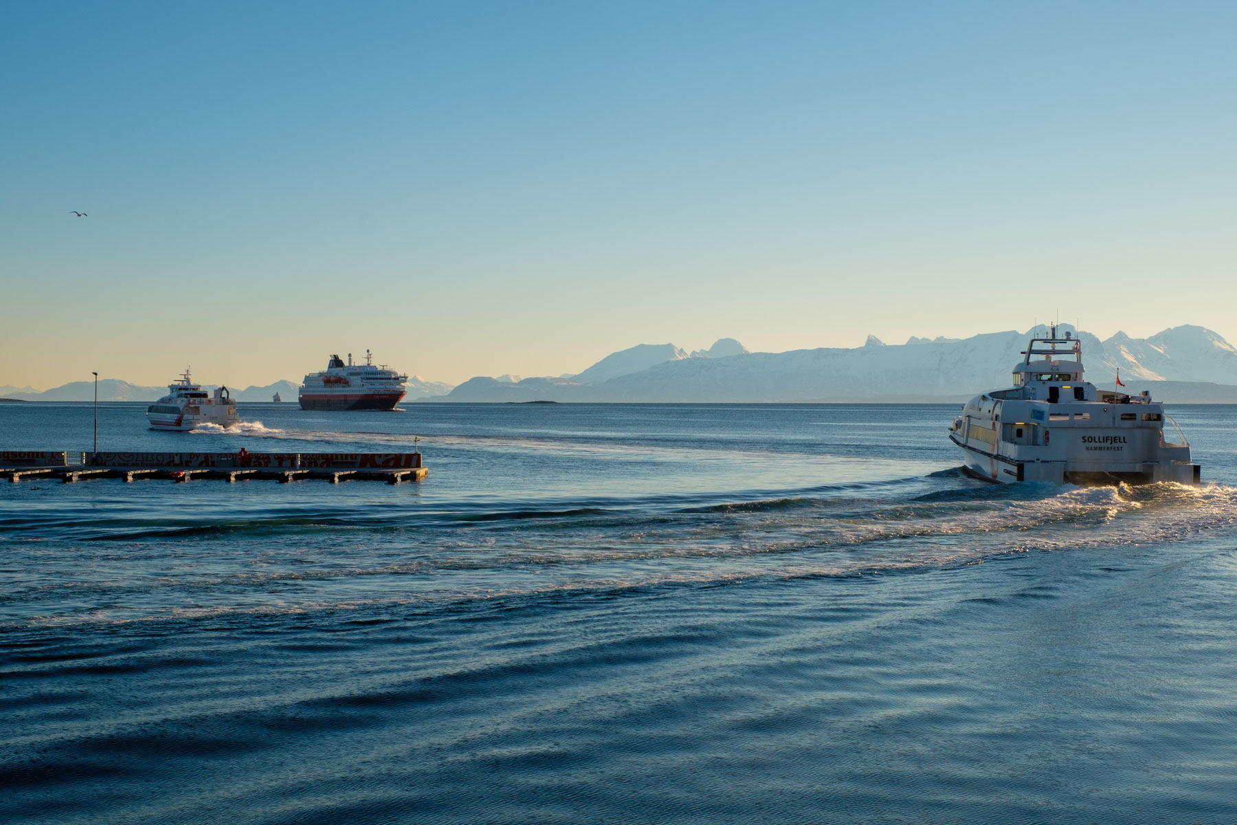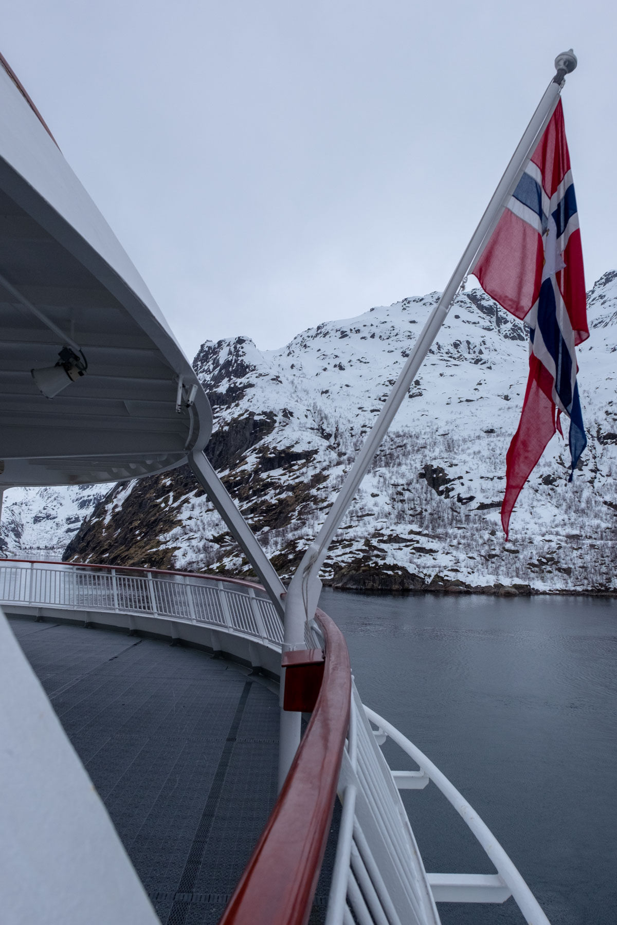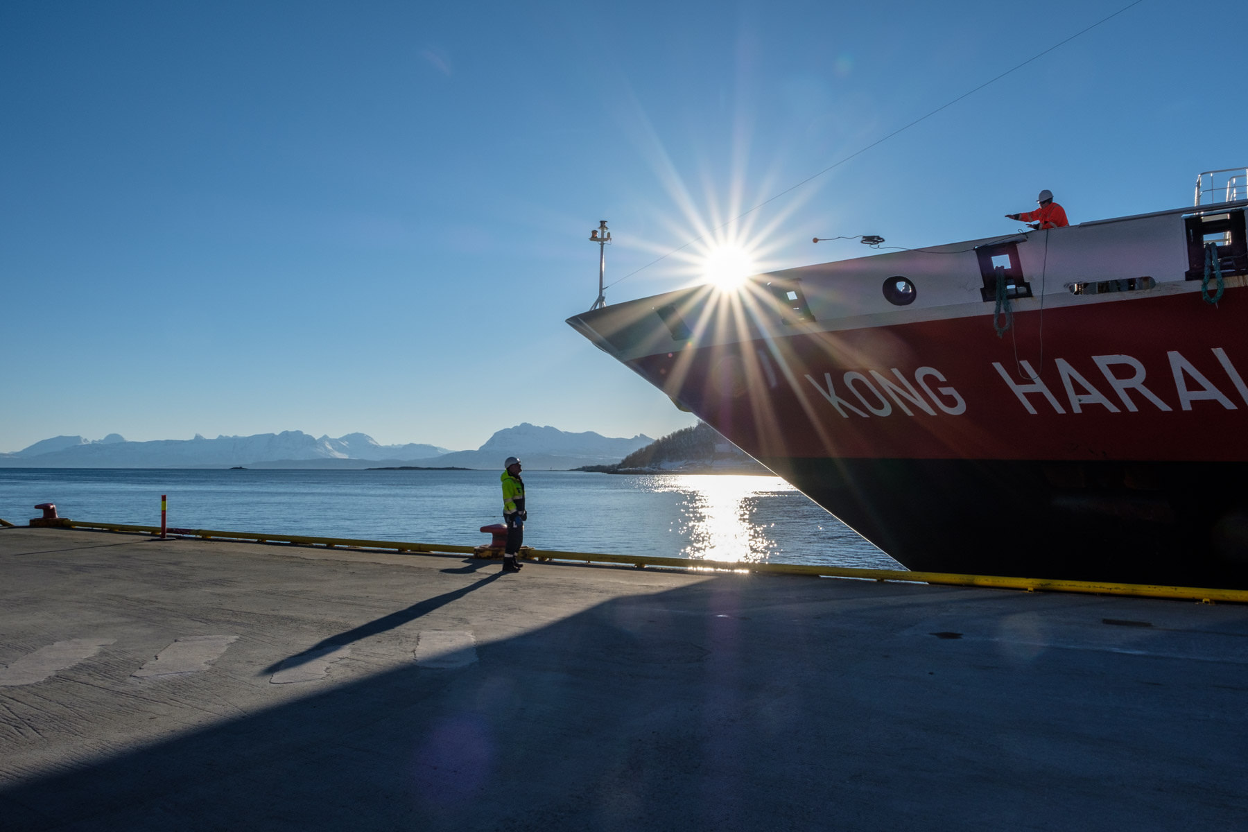 Die Zwischenübernachtung in Harstad hat sich sehr bewährt. So konnten wir in Ruhe ankommen, die Reiseplanung besprechen und dann den nächsten Tag gleich fotografisch beginnen. In Harstad begegnen sich morgens um 7.45 Uhr zwei Schiffe der Hurtigruten. Ein Foto mit beiden Schiffen blieb uns jedoch verwehrt, da die MS Kong Harald Verspätung hatte und die MS Nordkapp dann schon abgelegt hatte. Aber der strahlende Sonnenschein lies den Vorfrühstücksausflug doch zu einen gelungenen Auftakt unserer Reise werden.