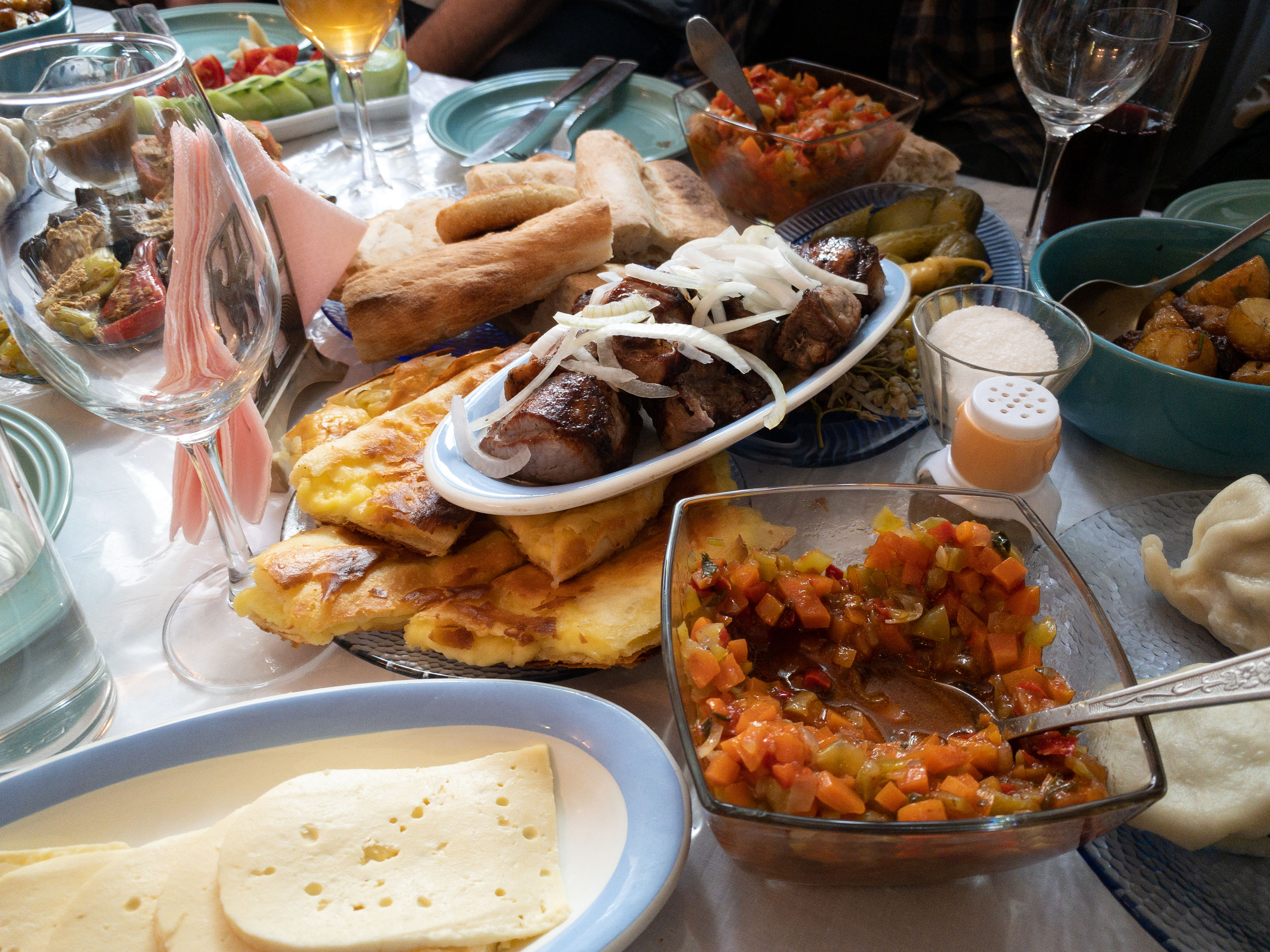 Zum Abschluss gab des dann aber noch einen absoluten Höhepunkt. Wir waren eingeladen bei einer georgischen Familie professioneller Musiker. The Ananuri. Neben leckerem Essen, unter anderem natürlich Khinkali, gab es auch mehrere Kostproben ihres musikalischen Könnens.