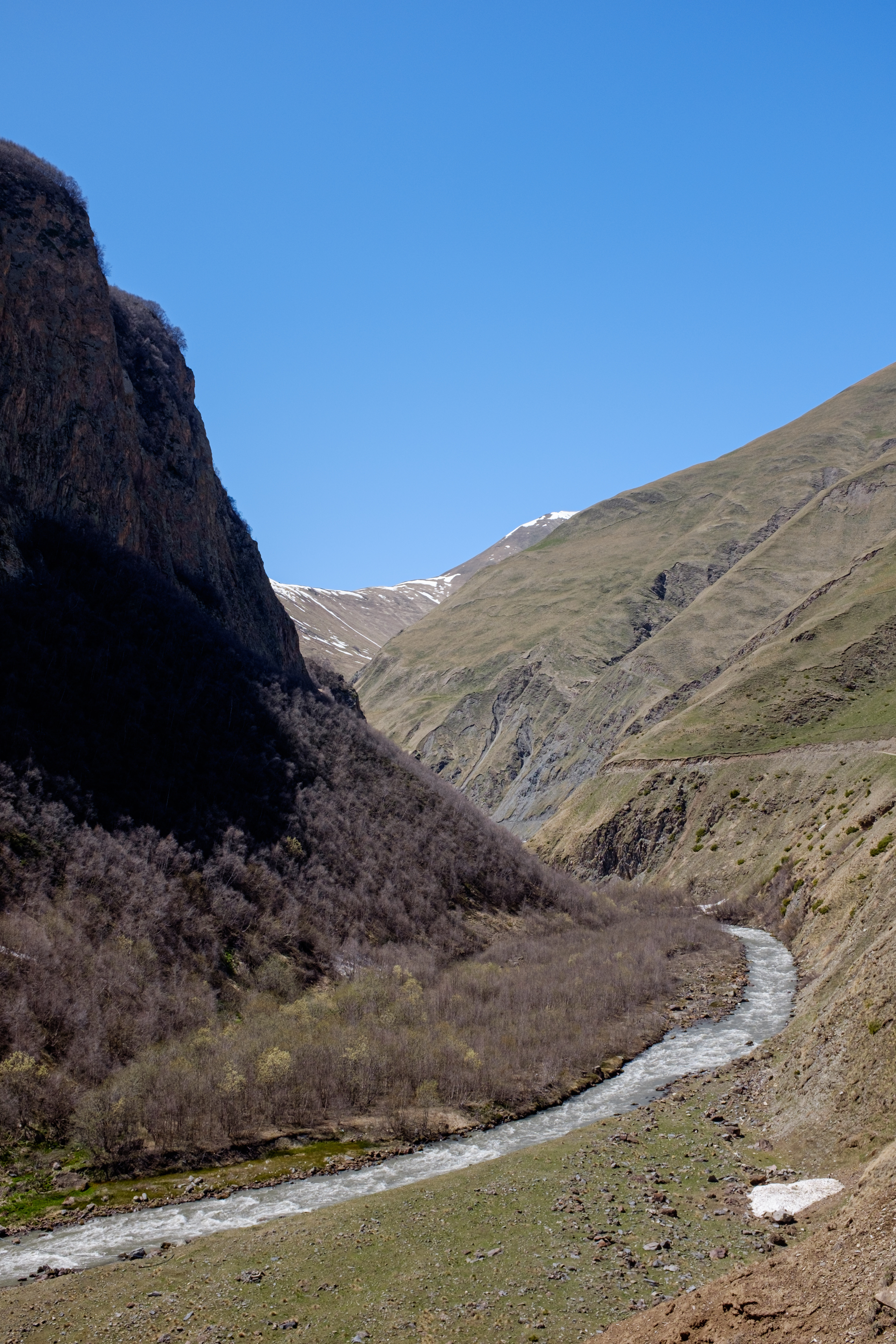 Der nächste Tag gehört zwei Tälern. Mit Off-Road-Fahrzeugen ging es zunächst ins Snotal bis nach Juta und anschließend nach Westen in das Trussotal. Letzteres war eine echte Herausforderung für die Fahrer, aber wir schafften es bis zum Dorf Ketrisi, das nur im Sommer von einigen Hirten bewohnt wird. Und so ist Georgien, ein abgelegenes Tal in dem keine Menschen leben, aber komplett versorgt mit LTE.