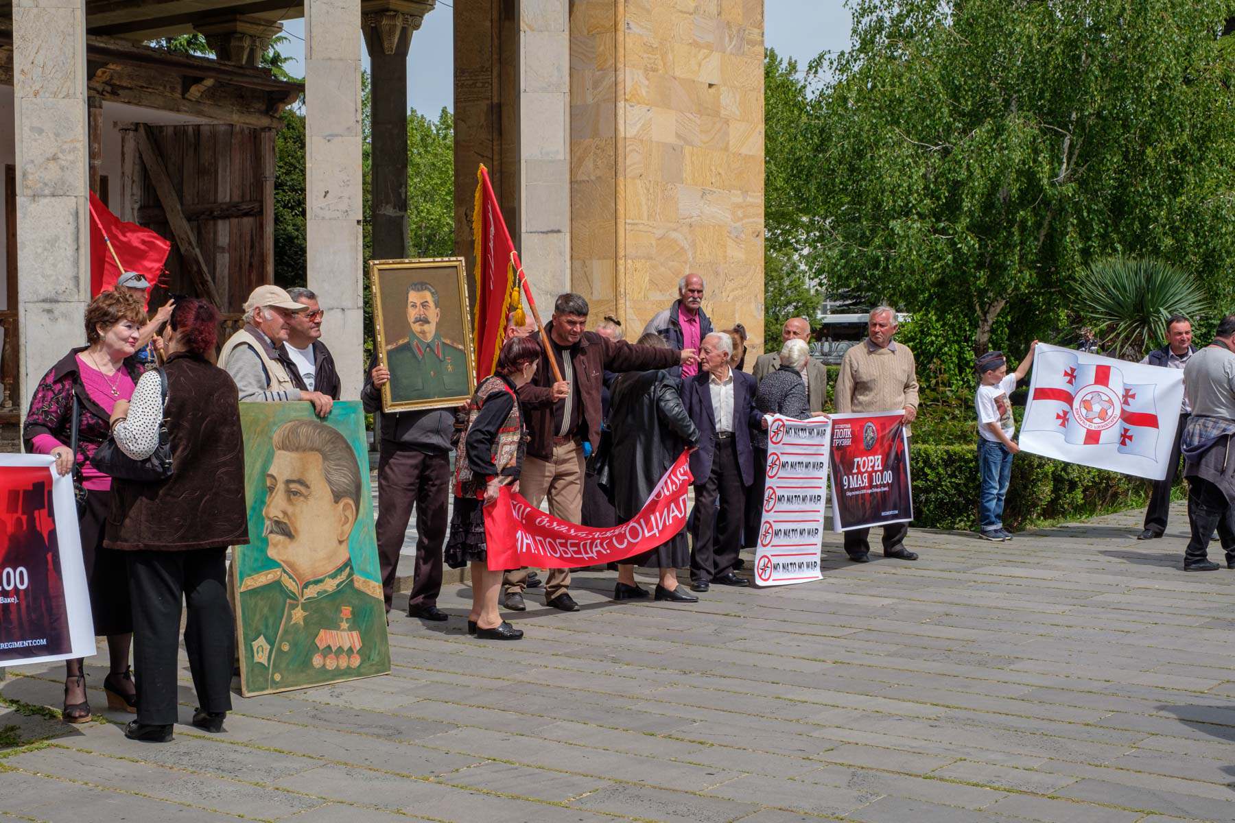 Zwei länger Ausflüge haben wir auf unserer Reise gemacht. Zunächst ging es für drei Tage in den Süden. Unser ersten Stopp auf dem Weg dorthin war in Upliziche, einer sehr alten Höhlenstadt, die man einfach gesehen haben muss. Weiter ging es nach Gori. Es ist die Geburtsstadt von Iosseb Bessarionis dse Dschughaschwili, den meisten wohl besser bekannt als Josef Stalin. Es gibt ein großes Stalin-Museum in Gori und es zeigt auch ein wenig der Zwiespältigkeit, die einem mit Stalin in Georgien begegnet. Ein Mischung aus Realismus und Bewunderung. Da wir genau am 9.5. – dem Sieg über Nazi-Deutschland – in Gori waren, wurde dieser Tag von einigen auch nach alter sowjetischer Tradition begangen