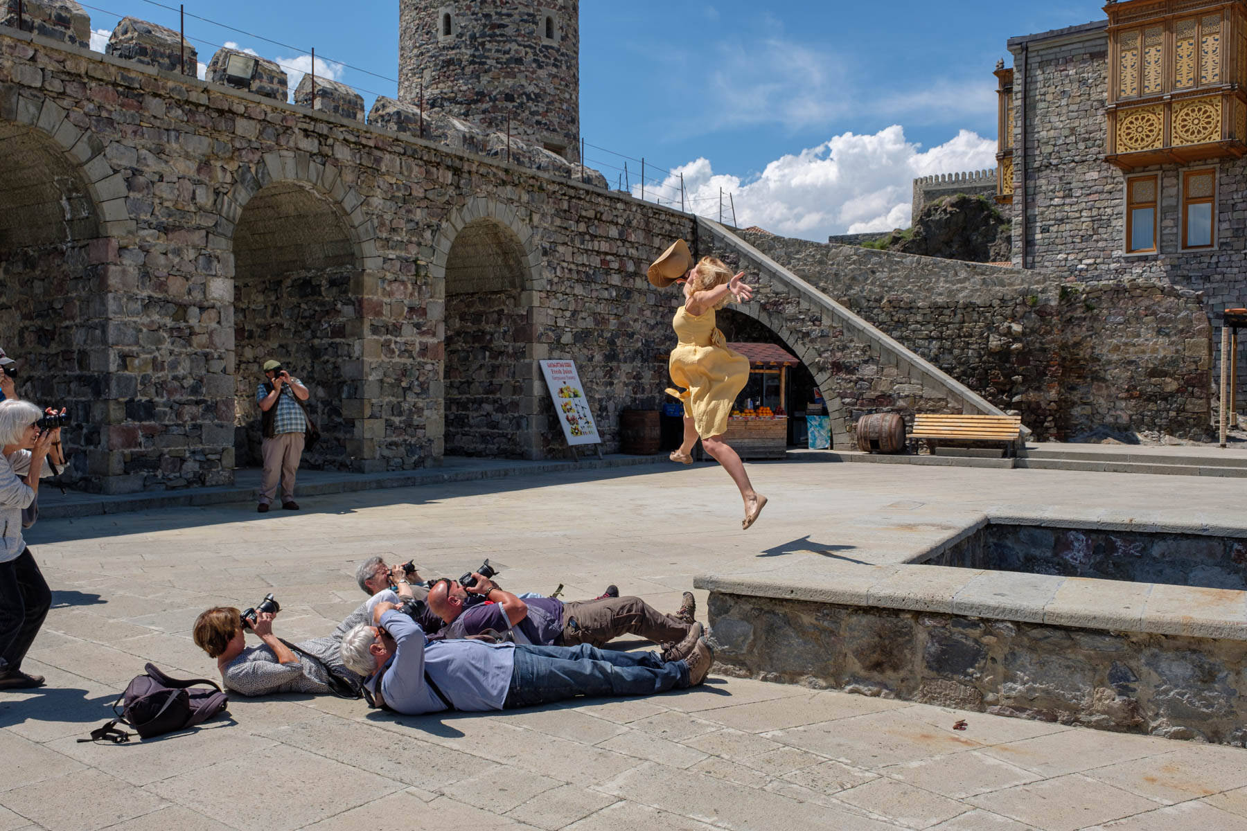 Weiter ging es nach Borjomi, der alten Kurstadt, die schon die russischen Zaren angezogen hat. Noch heute kann man im Kurpark das traditionelle Borjomi Mineralwasser probieren und sich auch abfüllen. Die gewerbliche Abfüllung ist aber inzwischen außerhalb des Kurparks. Übernachtet haben wir dann in Bakuriani, einem Wintersportort, wo die Hotels im Moment „im Minutentakt“ aus dem Boden sprießen. Eigentlich war nämlich geplant von hier aus über den Pass an den Tabatskurisee zu fahren. Aber in den Bergen ist es noch sehr kalt und so haben wir kurzfristig umdisponiert und fahren weiter nach Akalziche und toben uns in der Festung Rabat fotografisch aus. Zwei Hängebrücken bilden weitere Stopps bevor wir unser Ziel Wardzia erreichen