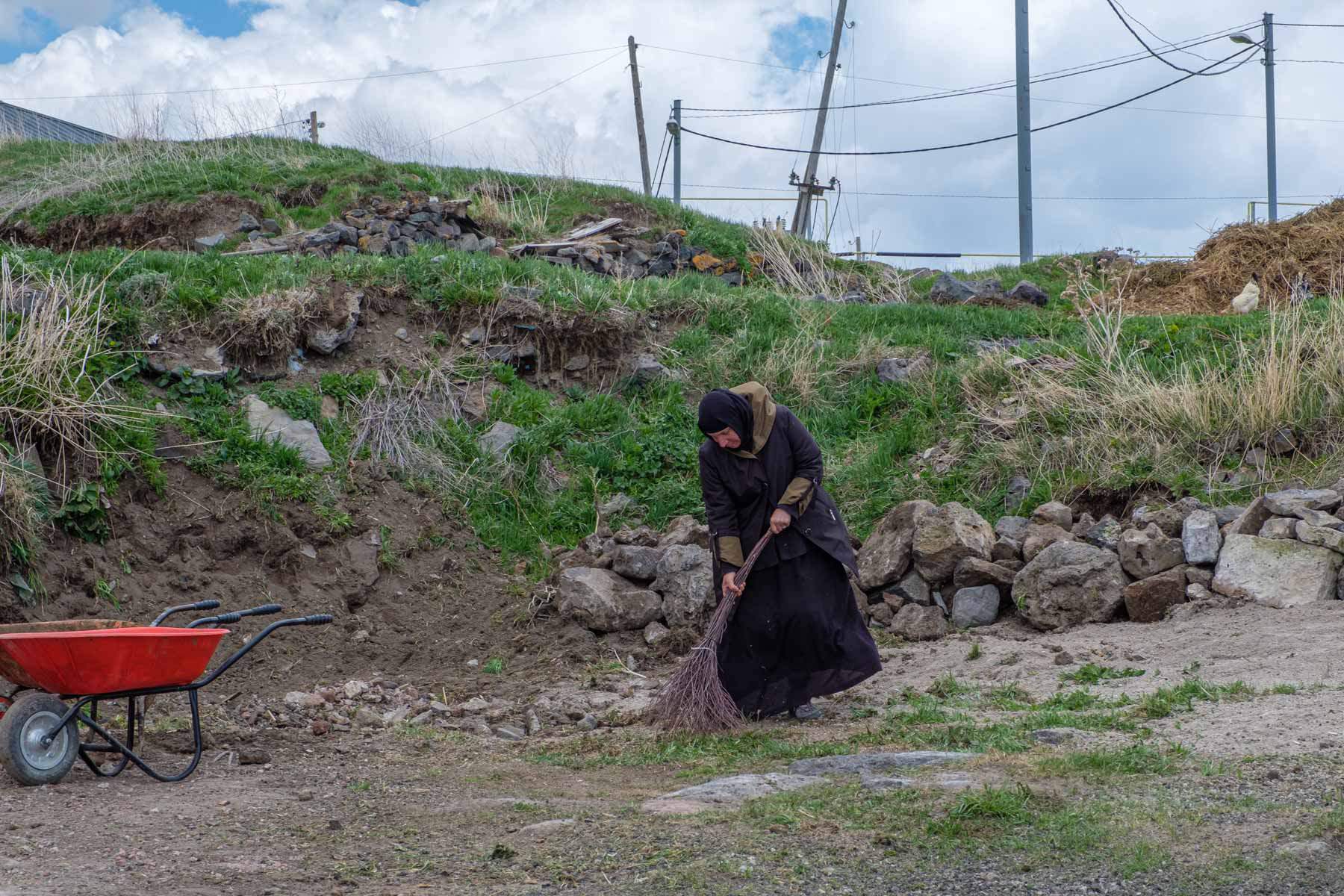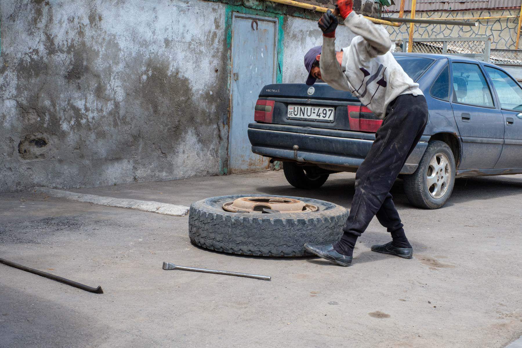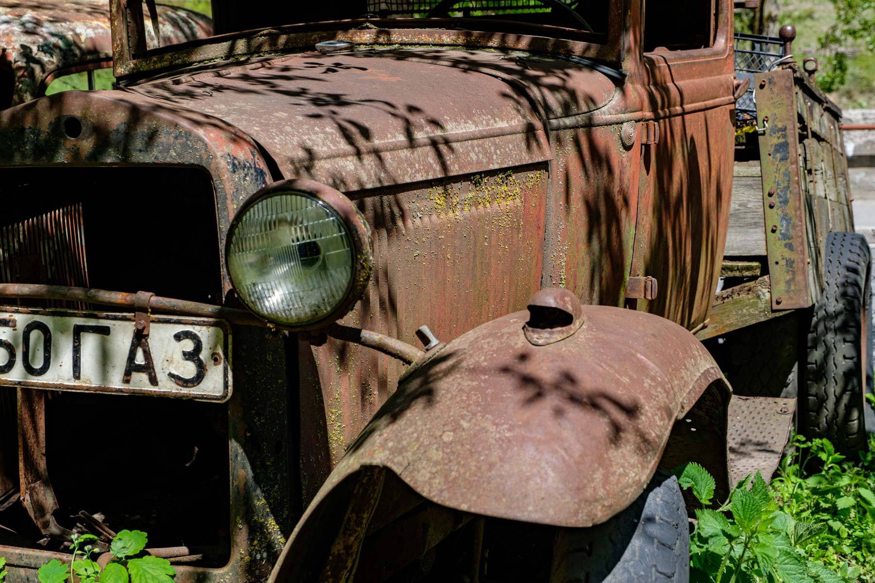 Am dritten Tag geht es in aller Ruhe wieder zurück nach Tbilisi. Vorbei an einem rostigen Eisenbahnwaggon über einem Fluß, einem ungewöhnlichem Reifenwechsel, landenden Störchen, einem Frauenkloster mit leckeren Köstlichkeiten, weiten Landschaften und einer netten Begegnung mit einer Familie die gerade Kartoffeln gelegt hatte.