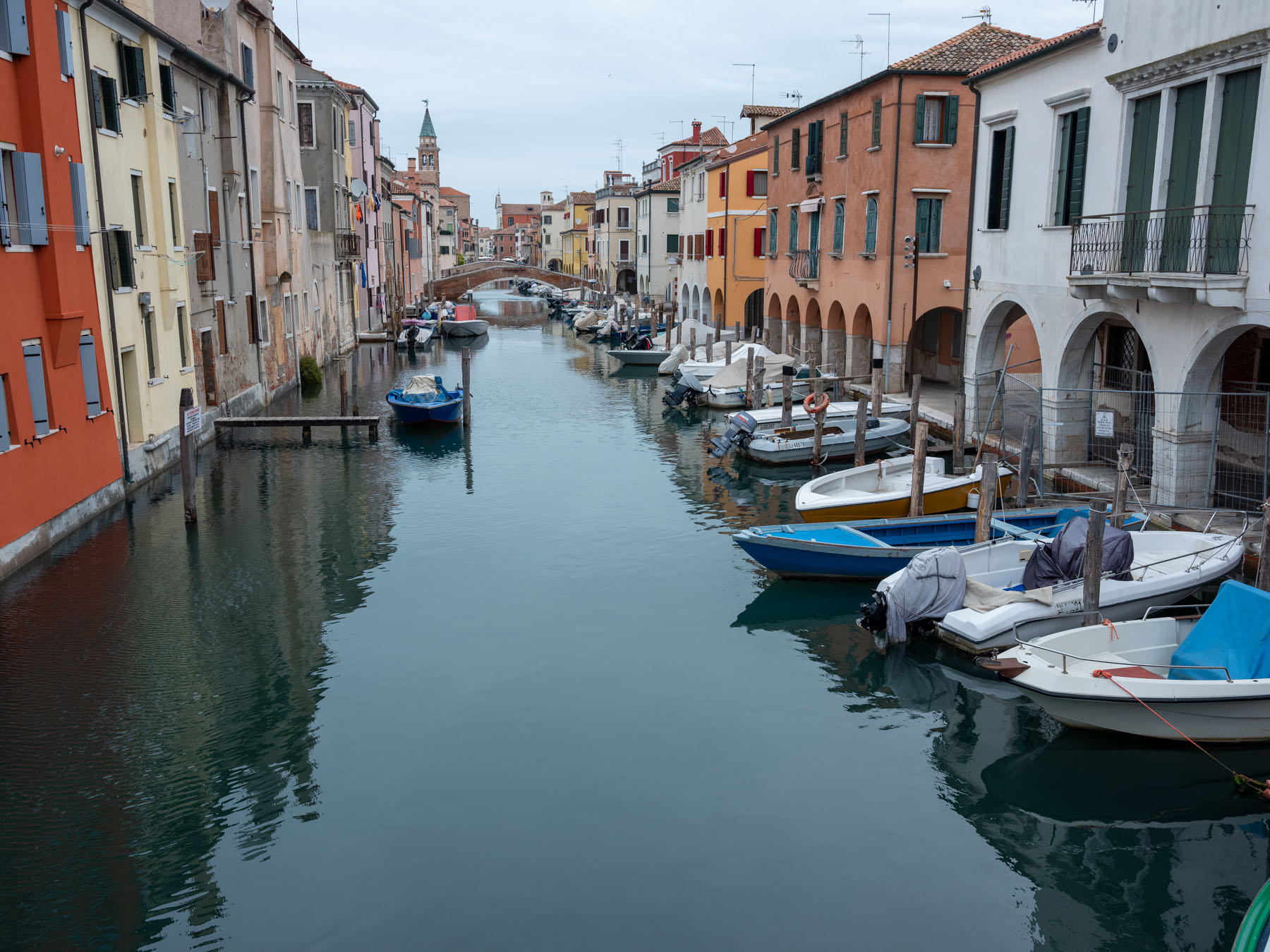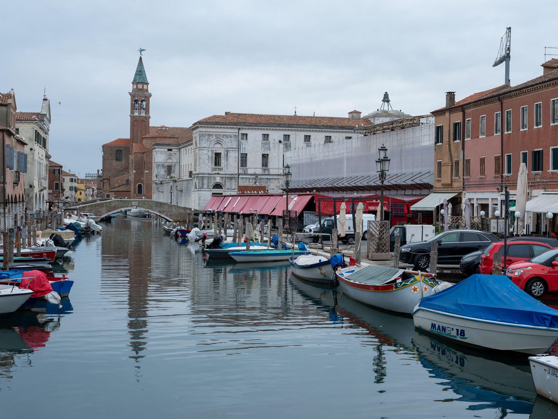 Die Anreise ist – wie immer – unkompliziert und unser Hotel „Locanda San Barnaba“ ist uns ja schon bekannt. Die Ruhe ohne den sonst üblichen Straßenverkehr überträgt sich rasch auf uns. Trotzdem zieht es uns gleich am nächsten Tag wieder auf Festland, denn wir wollen die Stadt Choggia besuchen. Wir haben gehört, es soll so eine Art „Leinvenedig“ mit Autos sein. Also geht es mit dem Vaporetto (Wasserbus) auf die Insel Lido. Dort wartet schon der Linienbus, der und ganz in den Süden zum Pellestrina Fährterminal bringt und dann geht es weiter mit einem Vaporetto noch weiter nach Süden direkt nach Chioggia. Die Stadt liegt ganz im Süden der Lagune und ist vor allem ein großer Fischereistandort. Die Altstadt ist viel kleiner aber ähnlich Venedig, nur dass sieht man eben auch Straßenverkehr.