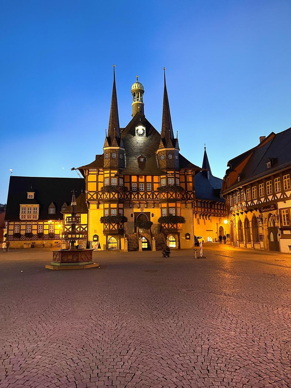 Nach den Tagen der Eisenbahnfotografie zogen wir von Bad Blankenburg nach Wernigerode um. Hier trafen im Laufe des Sonntags die Teilnehmer der BingShiLing Fotoreise Harz ein. Gleich am ersten Abend ging es – noch vor dem Abendessen – vor die Tür des Hotels um das Rathaus und den Marktplatz zu fotografieren.