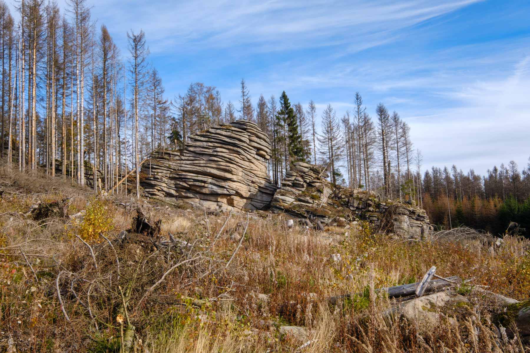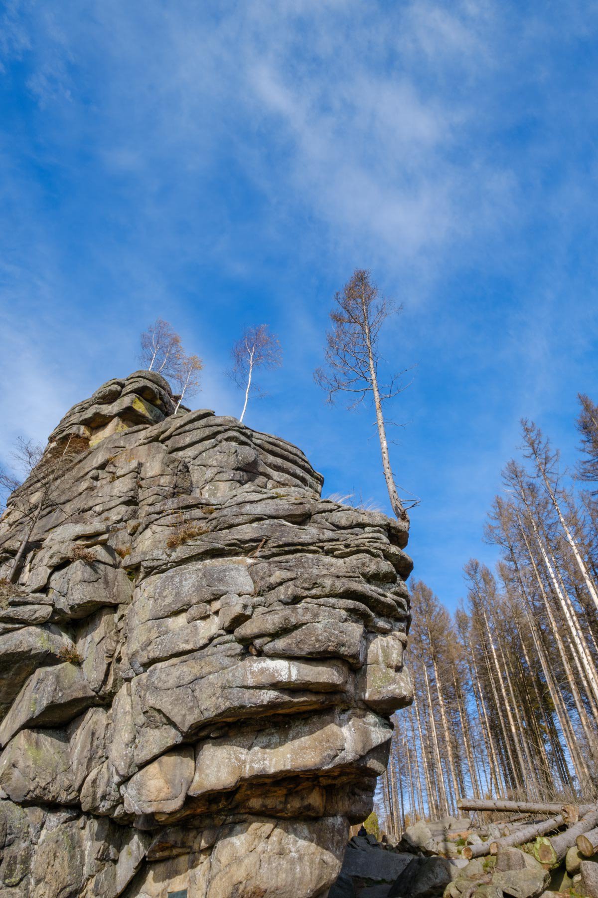 Ein Stückchen weiter befinden sich die Schierker Feuersteine. Einst lagen diese Felsformationen in dichtem Nadelwald, nun stehen sie fast vollständig frei.