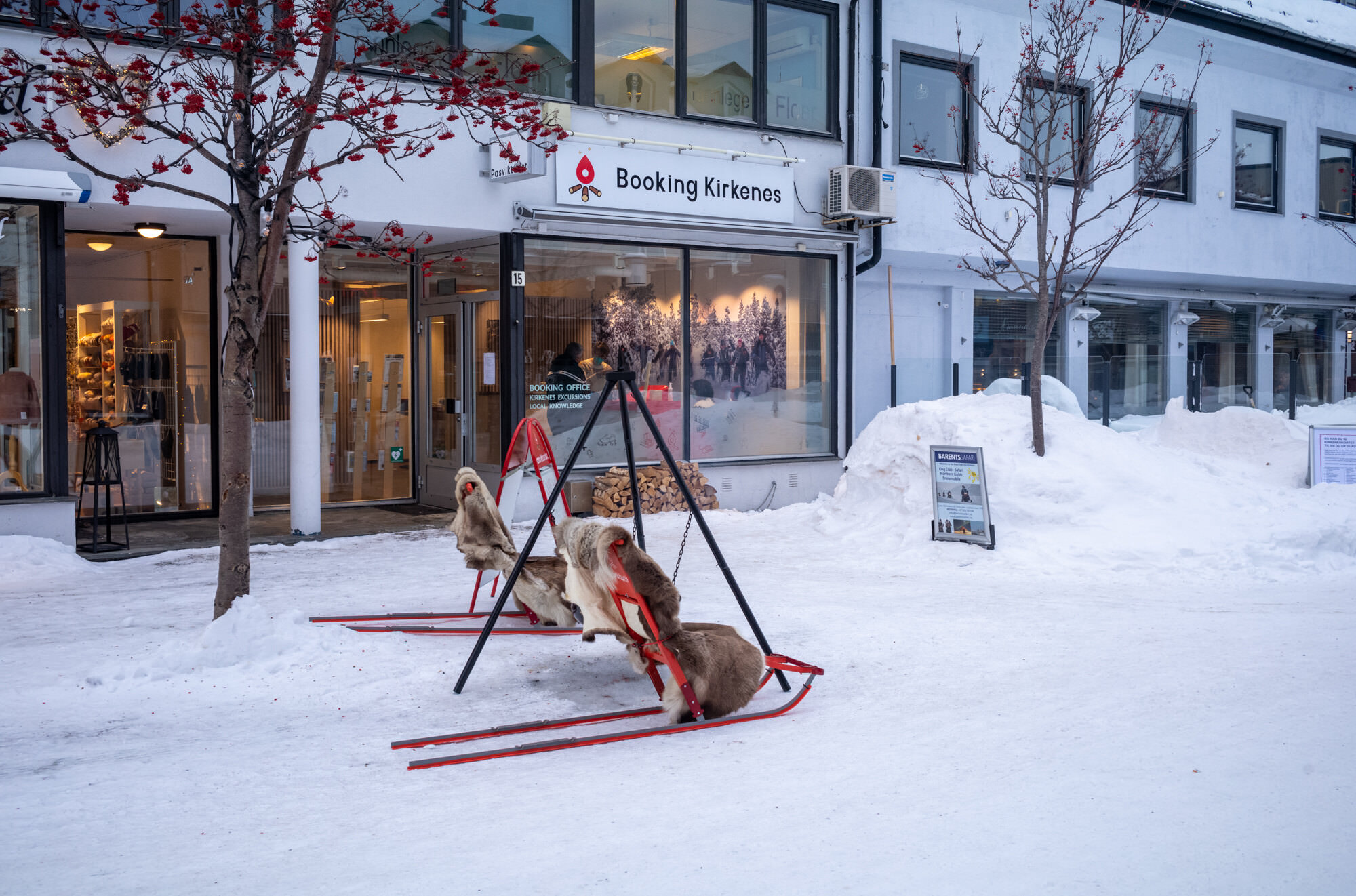 Den Innenstadtbesuch nutzten wir für einen Besuch bei Pasvik Turist, bzw. Kirkenes Booking wie es jetzt heißt. Ein sehr lohnender Besuch. Nach etwas anfänglicher Sprachverwirrung… norwegisch? oder lieber englisch? stellte sich heraus, dass Monika (die Chefin) Deutsche ist und seit 21 Jahren in Kirkenes lebt. Also auf deutsch.