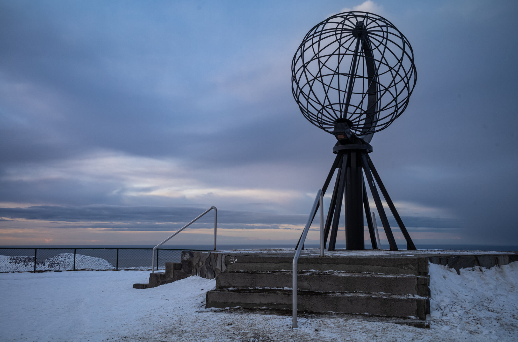 An selbigem Nordkapp – ein steil abfallender Felsen – steht die bekannte Weltkugel, als Hintergrund für Millionen von Selfies.