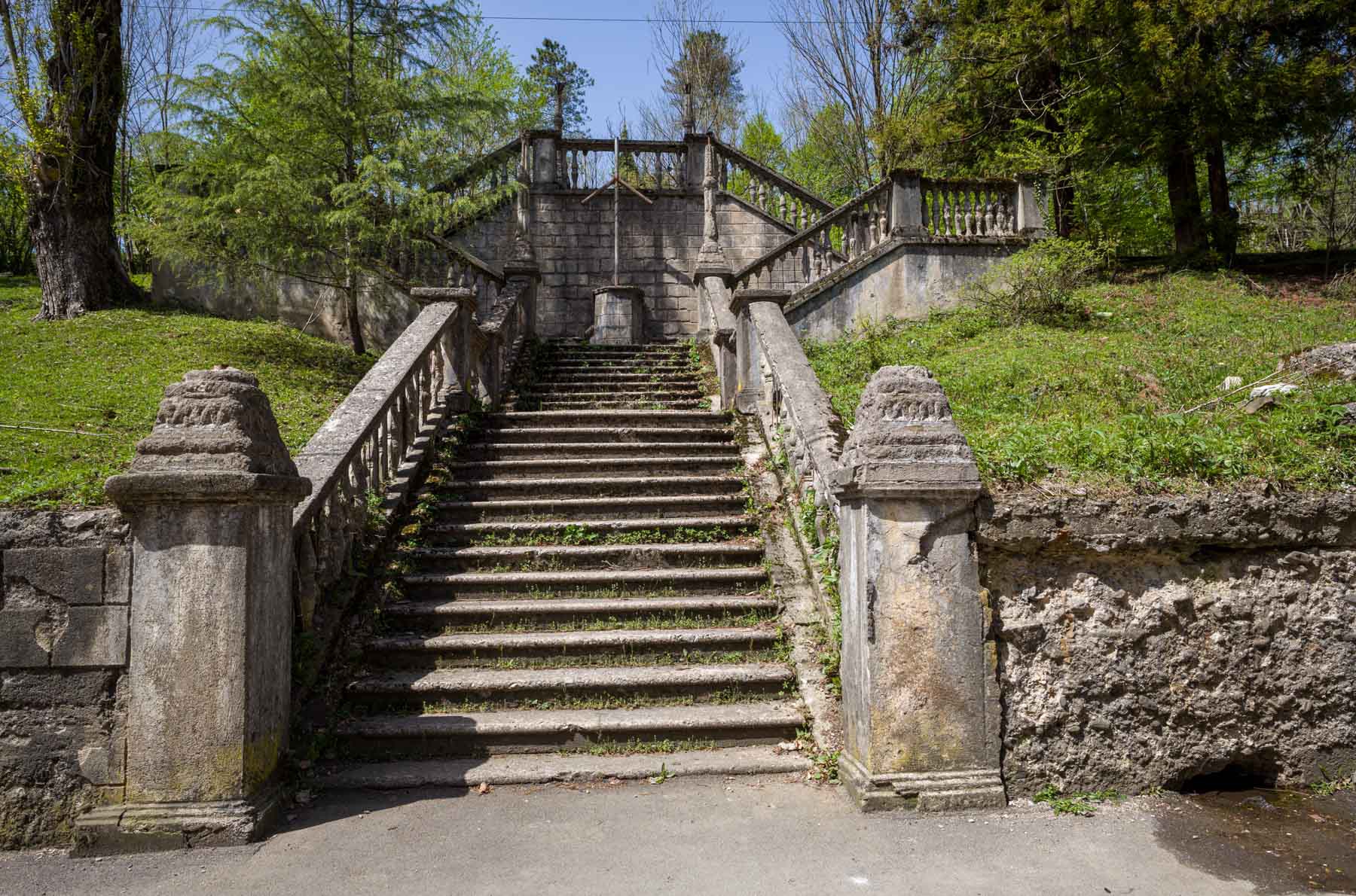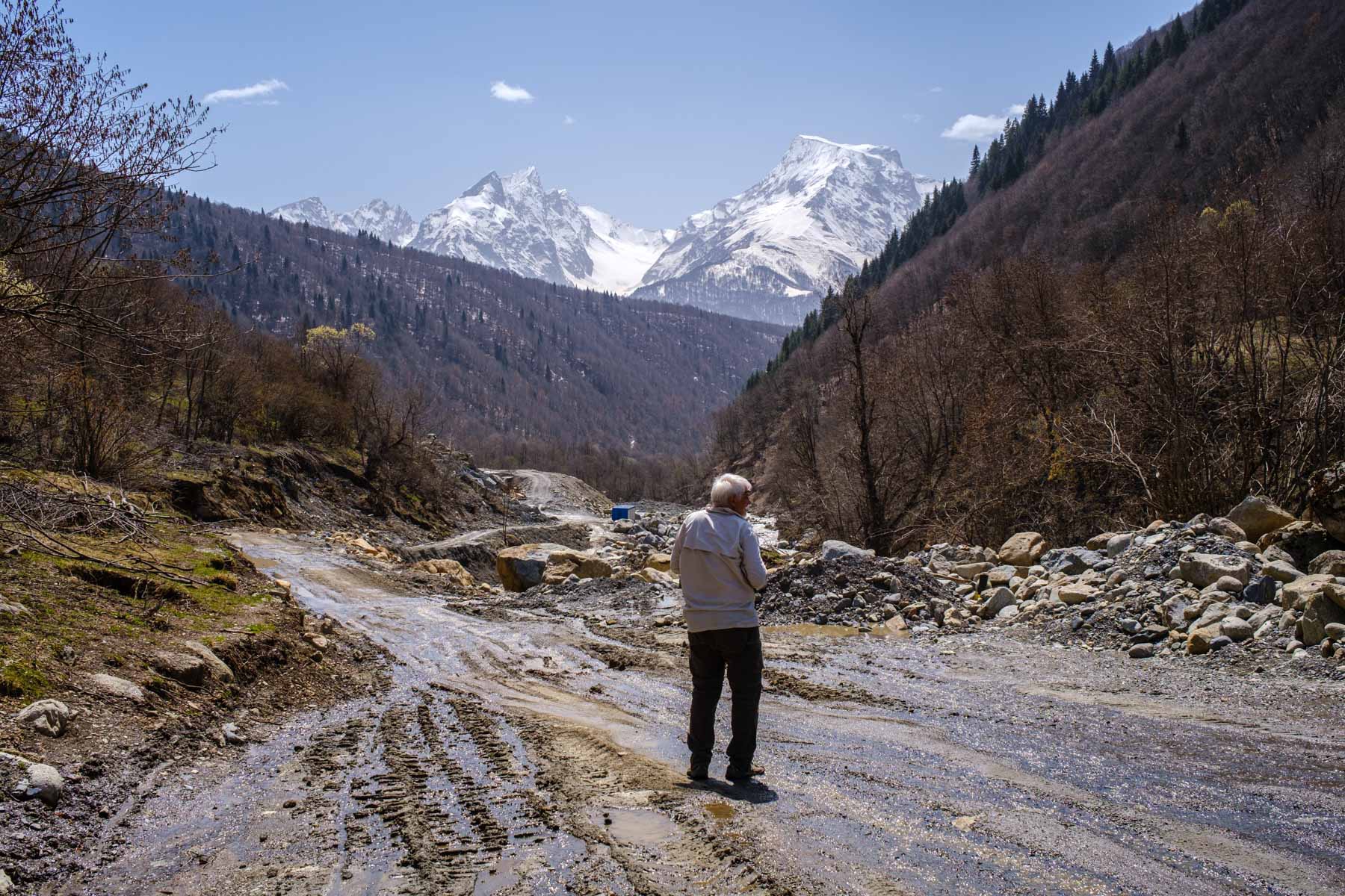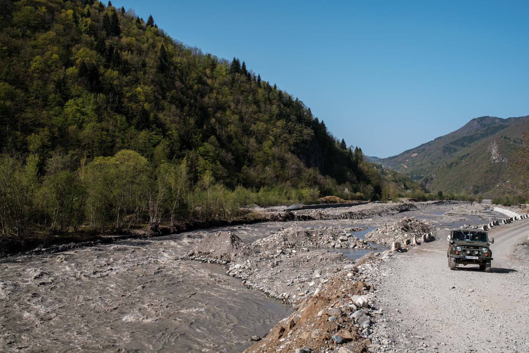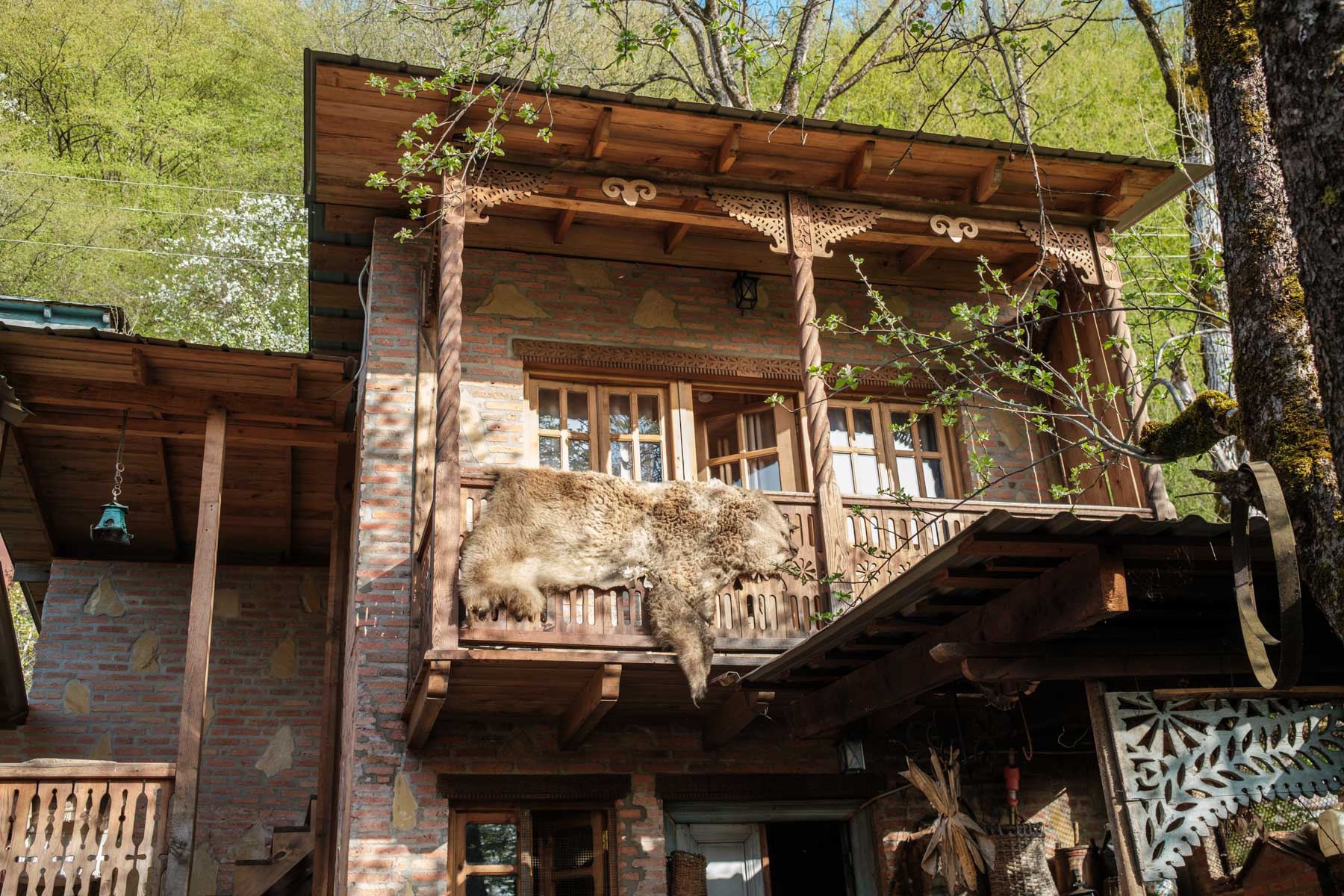 Der nächste Tag empfängt uns wiederum mit blauem Himmel und daher geht es zunächst zur Syngaoge. Dann fahren wir weiter bergauf nach Shovi. Früher ging die Straße hier weiter über den Pass, aber nach dem in 2008 der Teil Südossetien von Russland besetzt wurde ist hier eine geschlossen Grenze und die Straße nicht mehr befahrbar. Wir besuchen einen lost place „Stalins Datscha“. Warum das so heißt, weiß kein Mensch. Er war sicher nie hier und kannte es vermutlich nicht einmal. Direkt daneben liegt ein altes Feriendorf, also noch ein wenig lost place und dazu in grandioser Natur.
