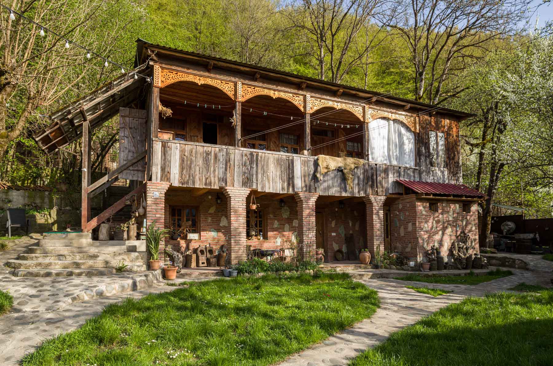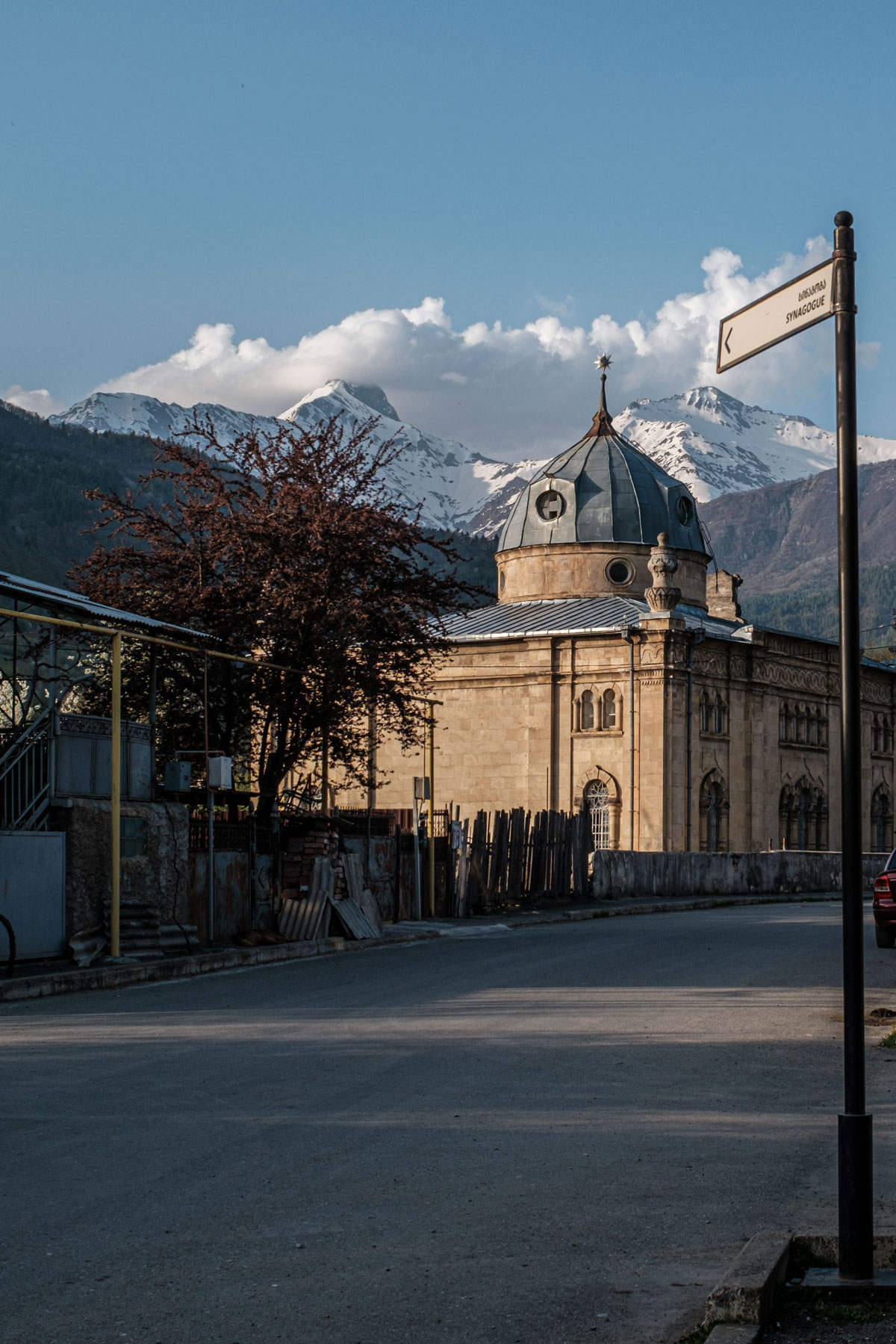 Am späten Nachmittag erreichen wir in Oni unser Guesthouse. Ein liebevoll restauriertes Haus mit zahlreichen Motive schon im Garten und rundum das Haus. Unser abendlicher Spaziergang zeigt uns neben der lokalen Tierwelt auch eine schöne Synagoge vor der Bergkulisse. Der Eingang liegt jedoch im Schatten, wir werden also den morgigen Tag hier starten.