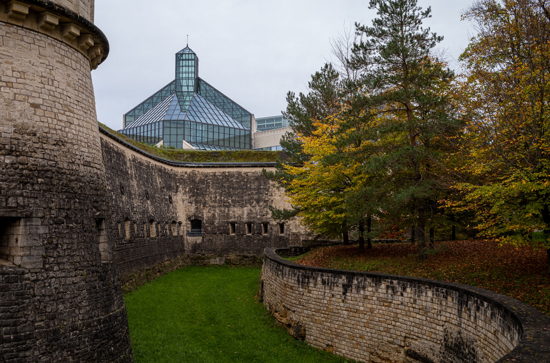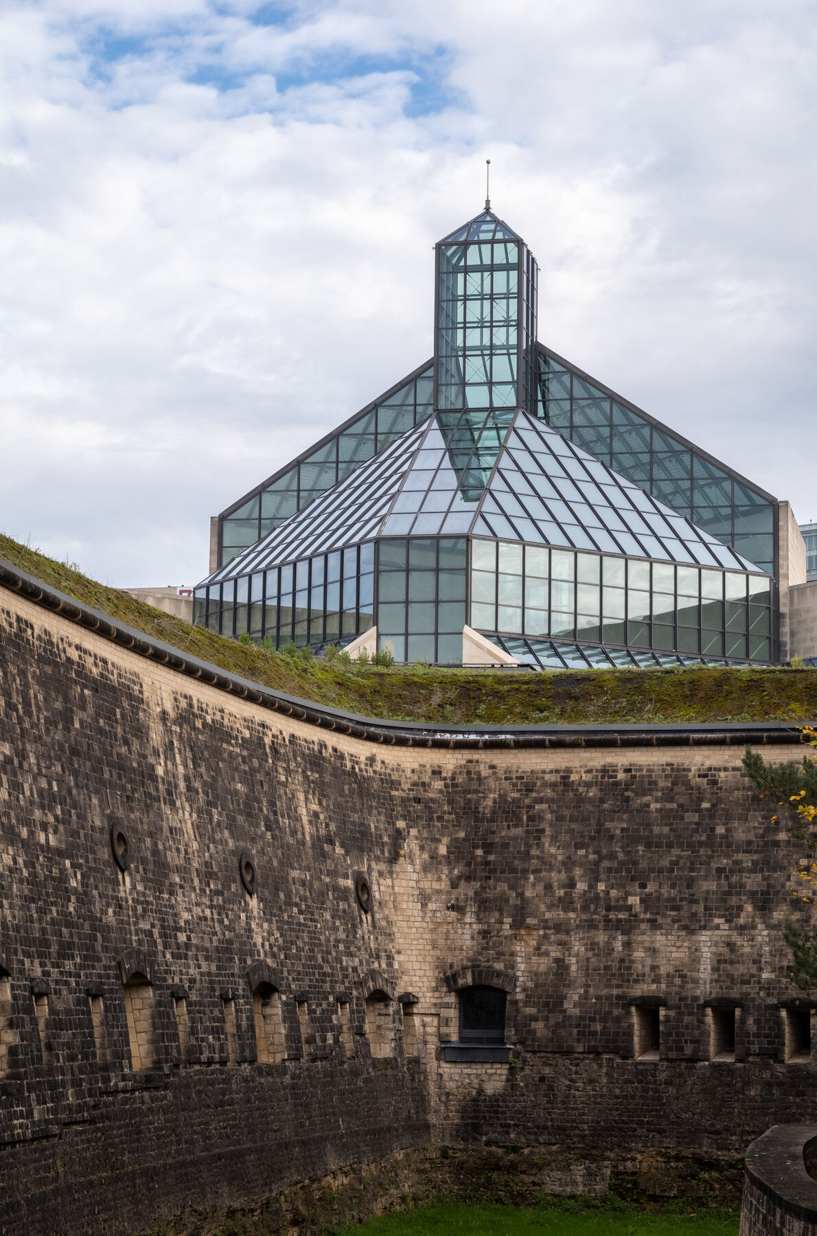 Nach einem sehr leckeren Frühstück wurden wir am Donnerstag vormittag von Claudia, Christine, Valérie und Heng vom Hotel zu einem Stadtspaziergang abgeholt. Zuerst ging es rund ums Hotel die interessante Architektur, vor allem die Philharmonie, des Stadtteils Kirchberg anschauen. Dann fuhren wir mit der Straßenbahn in kurzer Fahrt direkt ins Zentrum. Der öffentliche Nahverkehr ist in Luxemburg komplett kostenlos, aber es ist schon ein sehr merkwürdiges Gefühl einfach so in die Bahn einzusteigen ohne Fahrkarte und ohne sich um Tarife und ähnliches kümmern zu müssen.
