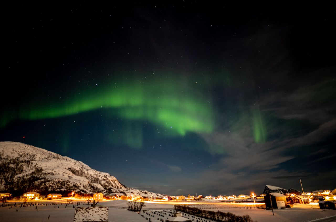 Gegen Mittag ging es nach Sommarøy an die Küste. Einen kleinen Zwischenstopp ab es auf der Hochebene Kattfjordeidet, denn die Sonne beleuchtete die Berge wieder wunderschön. Einen zweiten Stopp dann rechtzeitig zum Sonnenuntergang (um 14 Uhr) kurz vor Sommerøy. Am Abend konnten wir dann erste Erfahrungen mit dem Nordlicht sammeln.