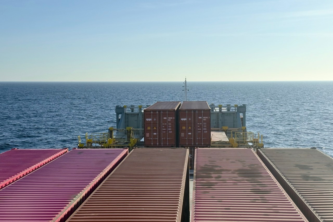Zum Frühstück sind wir schon weit in der Ostsee, fast schon vor Rügen. Beim Frühstück erfahren wir dann, dass es durch den kleinen Belt gehen wird. Mit einem Tiefgang von 6,9 m – nachdem etwas Ballast abgelassen wurde – können wir es wagen. Es ist eine ruhige Fahrt durch die Ostsee, das Wetter ist trübe und gelegentlich regnet es etwas.